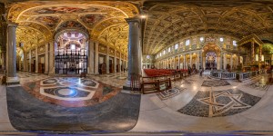 The domed octagonal Lateran Baptistery stands somewhat apart from the Archbasilica of Saint John Lateran, Rome, to which it has become joined by later construction. This baptistery was founded by Pope Sixtus III in 440. This baptistry was for many generations the only baptistery in Rome, and its octagonal structure, centered upon the large octagonal basin for full immersions, provided a model for others throughout Italy, and even an iconic motif of illuminated manuscripts, "The fountain of Life".