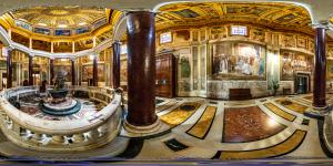 The Colosseum or Coliseum, also known as the Flavian Amphitheatre or Colosseo, is an oval amphitheatre in the centre of the city of Rome, Italy. Built of travertine limestone, tuff (volcanic rock), and brick-faced concrete, it was the largest amphitheatre ever built at the time and held 50,000 to 80,000 spectators. Construction began AD 72 and was completed in AD 80. Further modifications were made (81–96). it was used for gladiatorial contests and public spectacles such as mock sea battles, animal hunts, executions, re-enactments of famous battles, and dramas based on Classical mythology. Also seen in this panorama: Arch of Constantine the Great.
